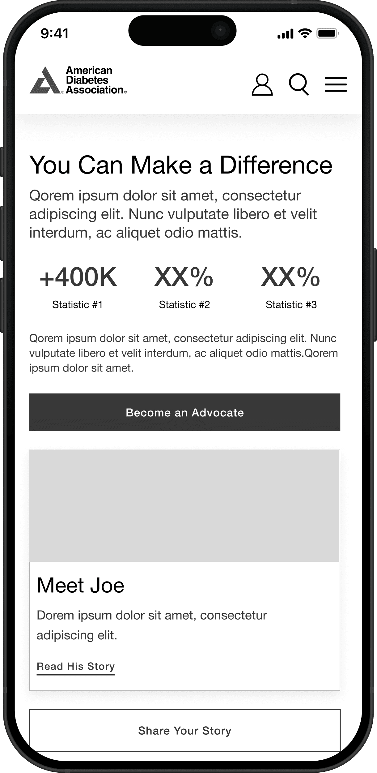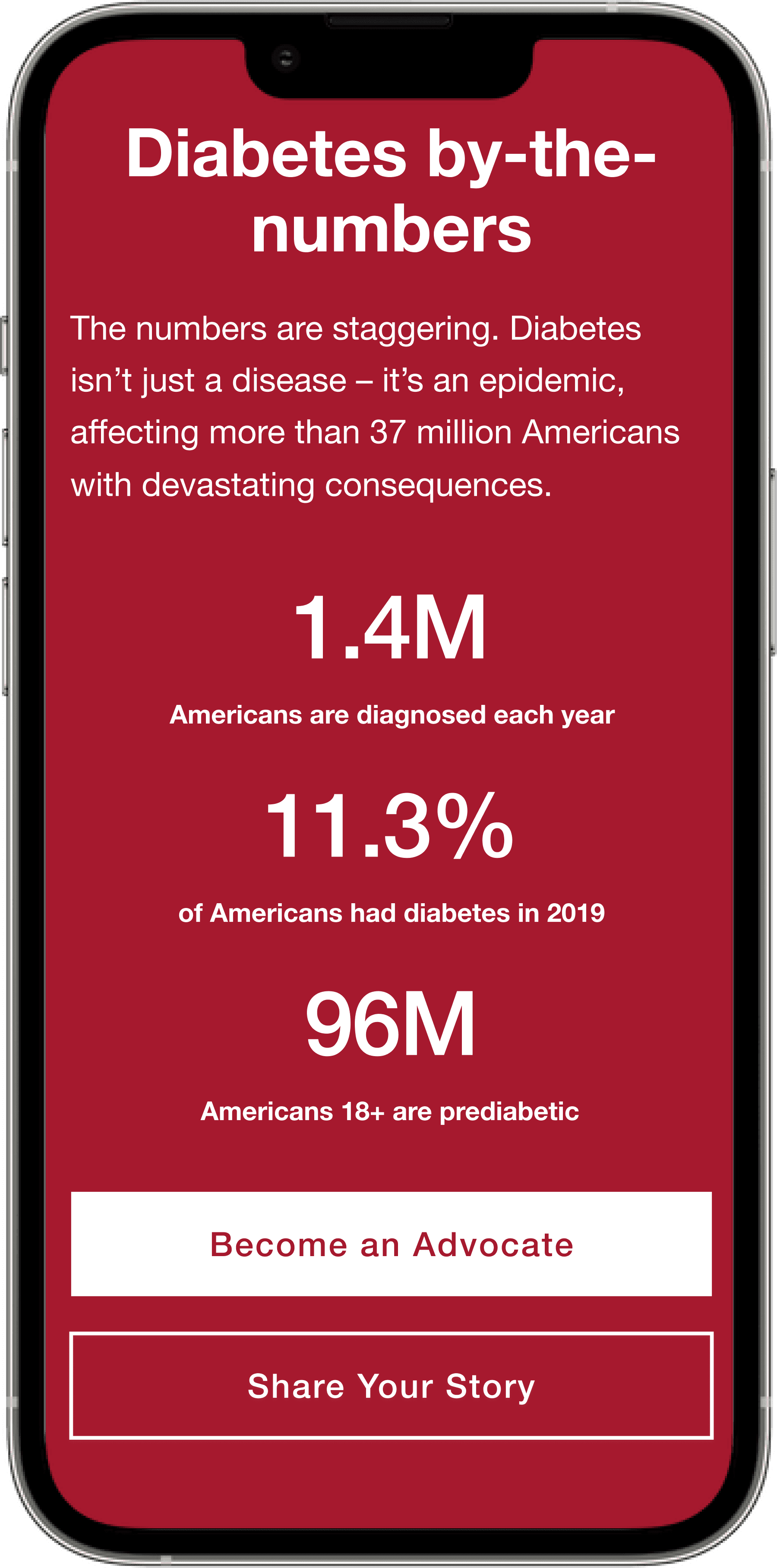 For anyone visiting the website, we wanted to highlight the impact that diabetes has around the world. The goal is to have visitors become an ADA Advocate or share their stories.