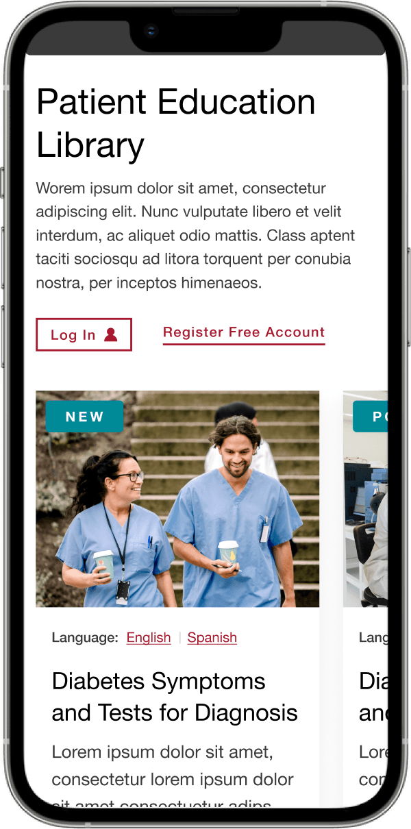 The original architecture and UX for the Diabetes Professionals website were replaced with a mobile-friendly, easy-to-navigate, and personalized experience that sped task completion, site revisits, and increased usefulness.