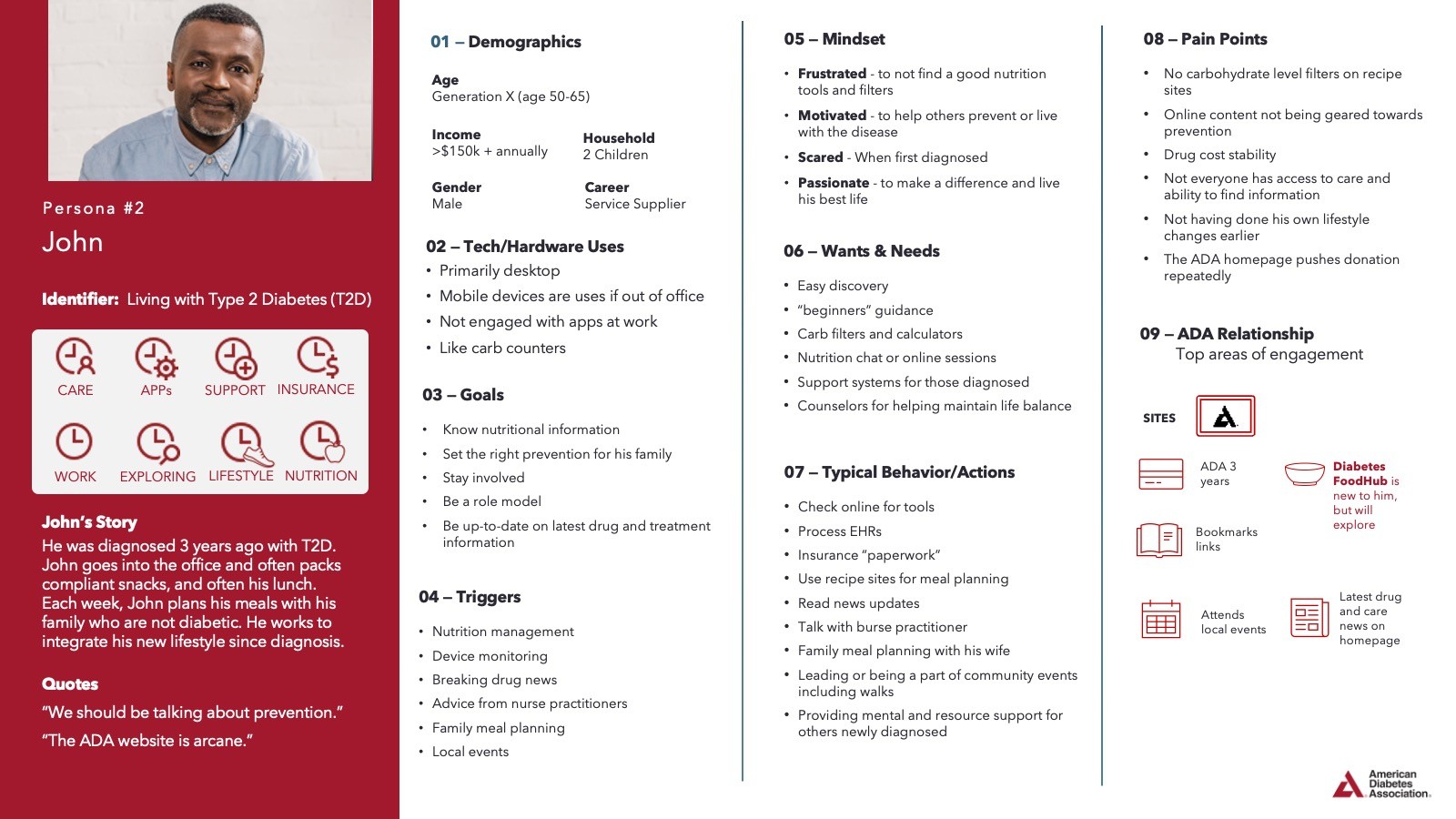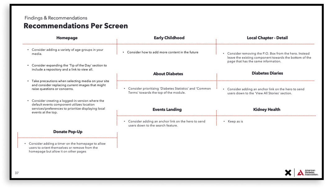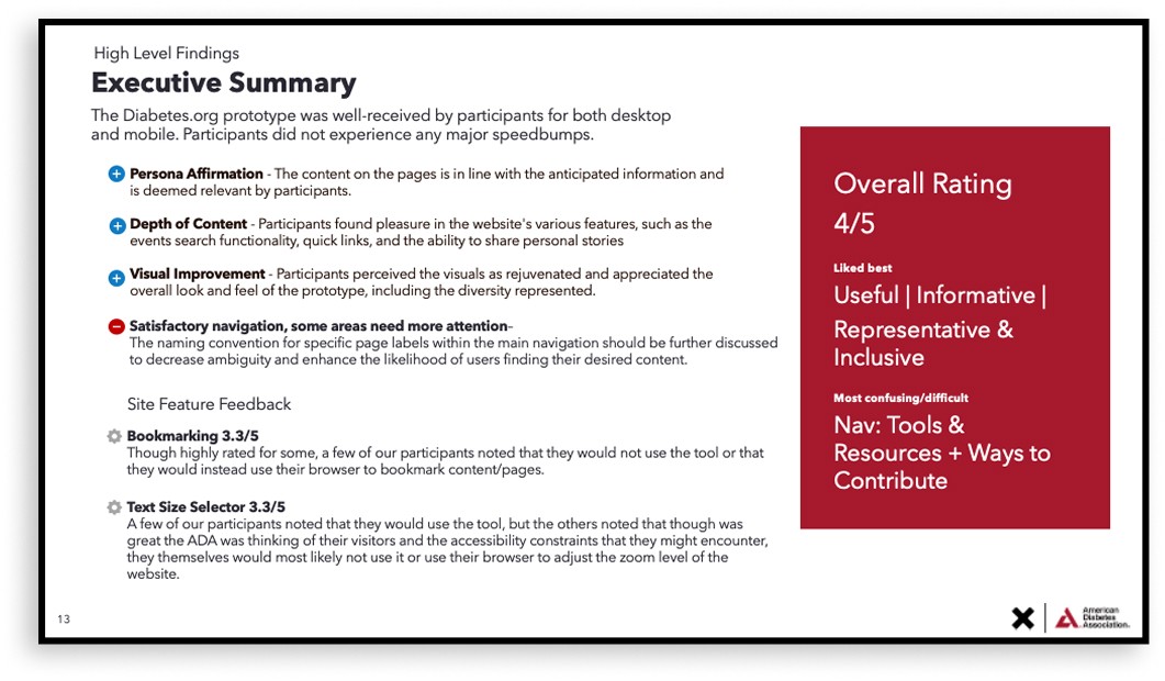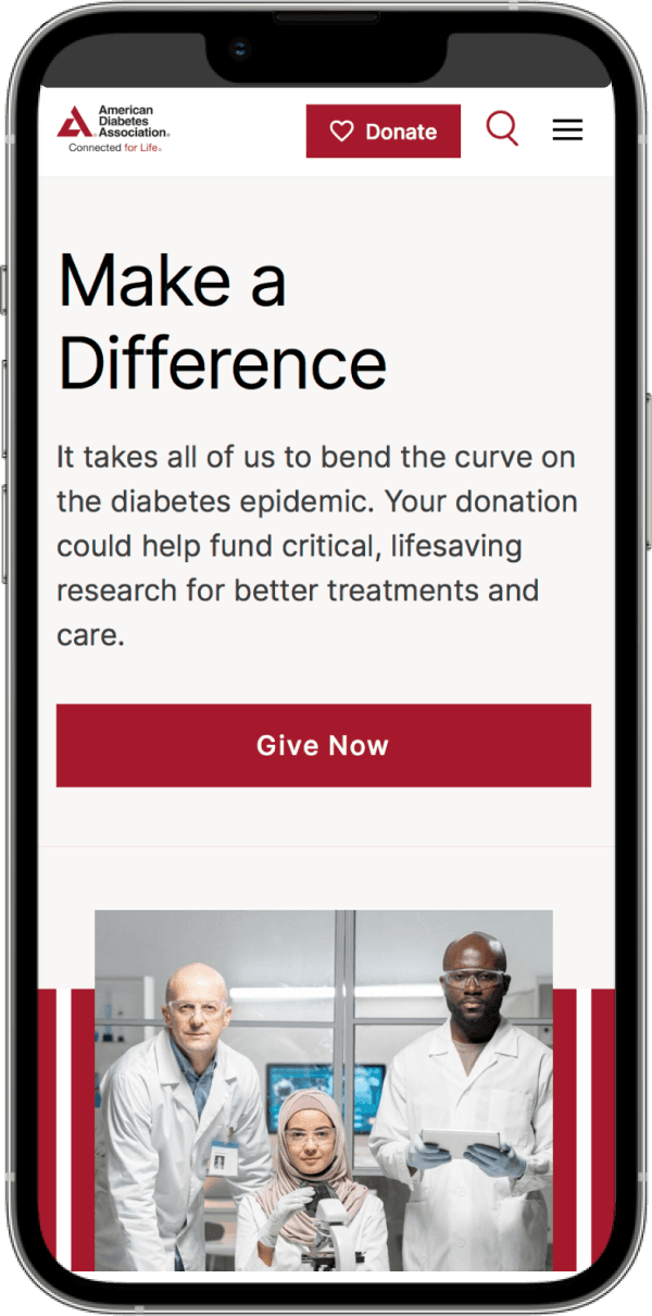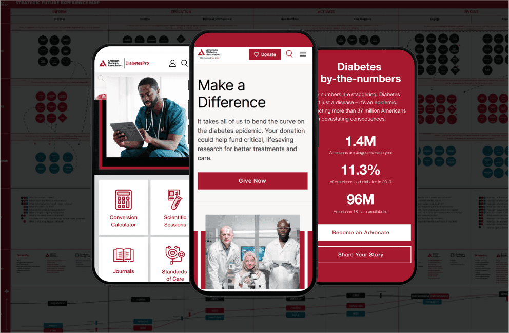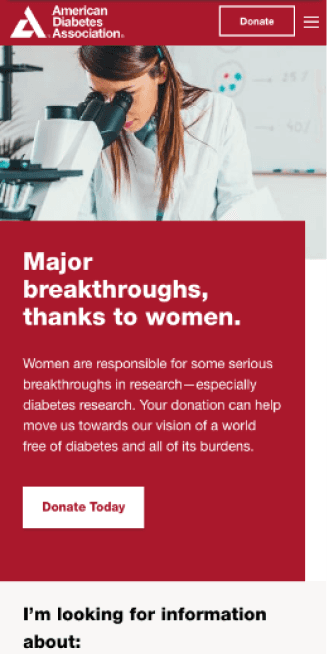 The goal was to improve content findability and engagement for those living with diabetes and their caregivers, while encouraging visitors to support the ADA's mission by donating or becoming a member.