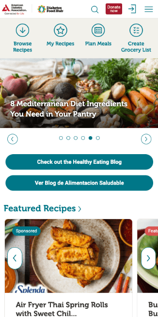 DiabetesFoodHub.org has useful functionality but recipes are hard to find and wasn't mobile friendly