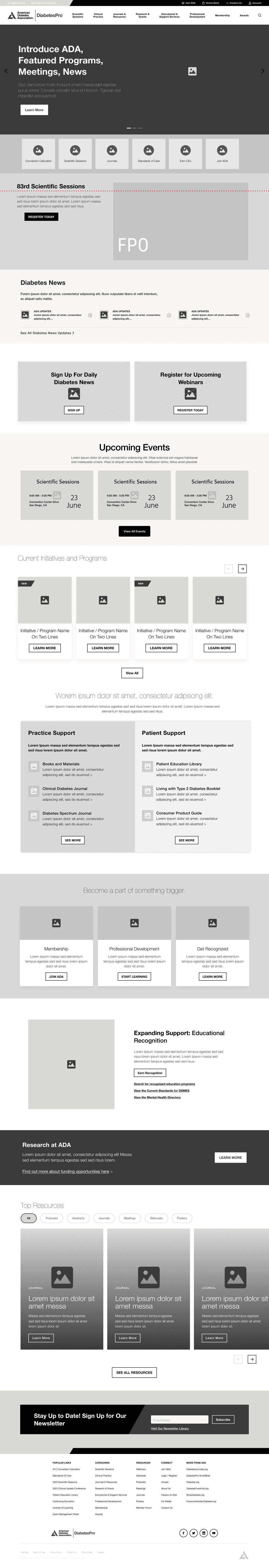 I approached the redesign of three ADA websites as a unified system, starting with the Diabetes Professional site to establish shared patterns, components, and stakeholder alignment. As that site moved into testing, I initiated design work on the next two. This holistic, parallel approach allowed teams to share insights in real-time, reduce redundancy, and accelerate delivery while maintaining quality and a user-centered focus across all three experiences.