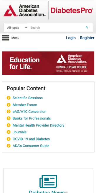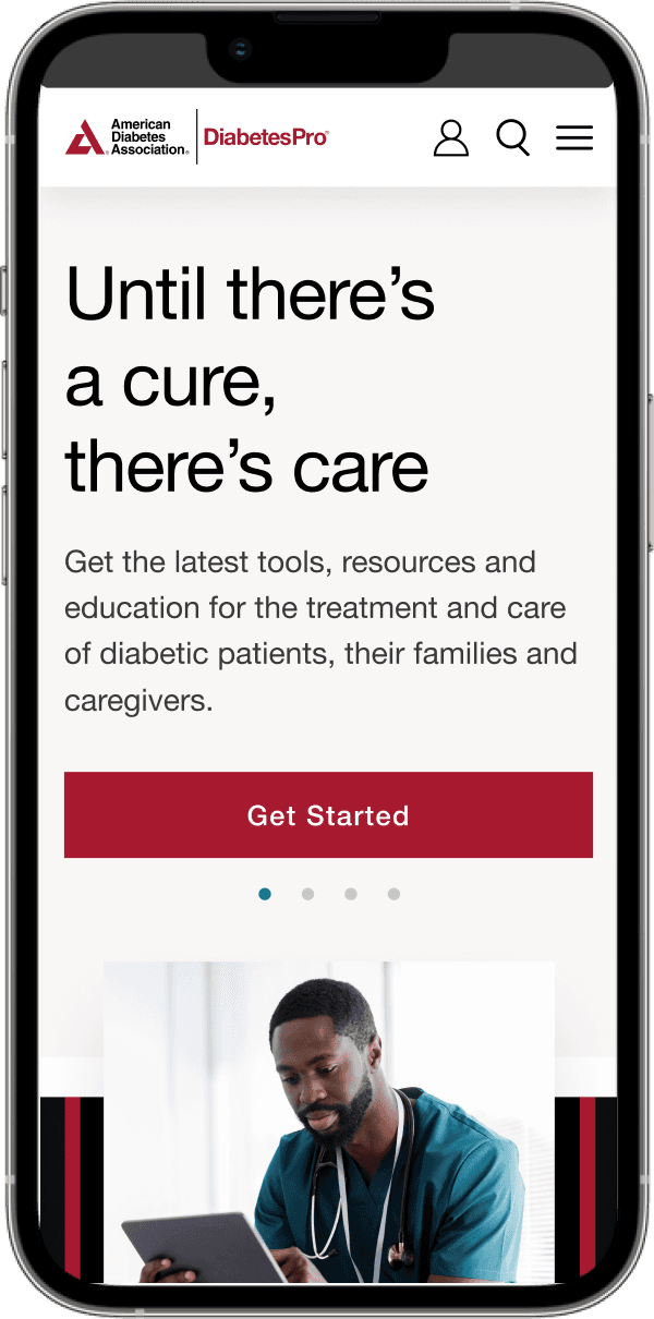 Starting with Diabetes Professionals website, its original architecture and UX were replaced with a mobile-friendly, easy-to-navigate and personalized experience that sped task completion, site revisits, and increased usefulness for all medical professionals.